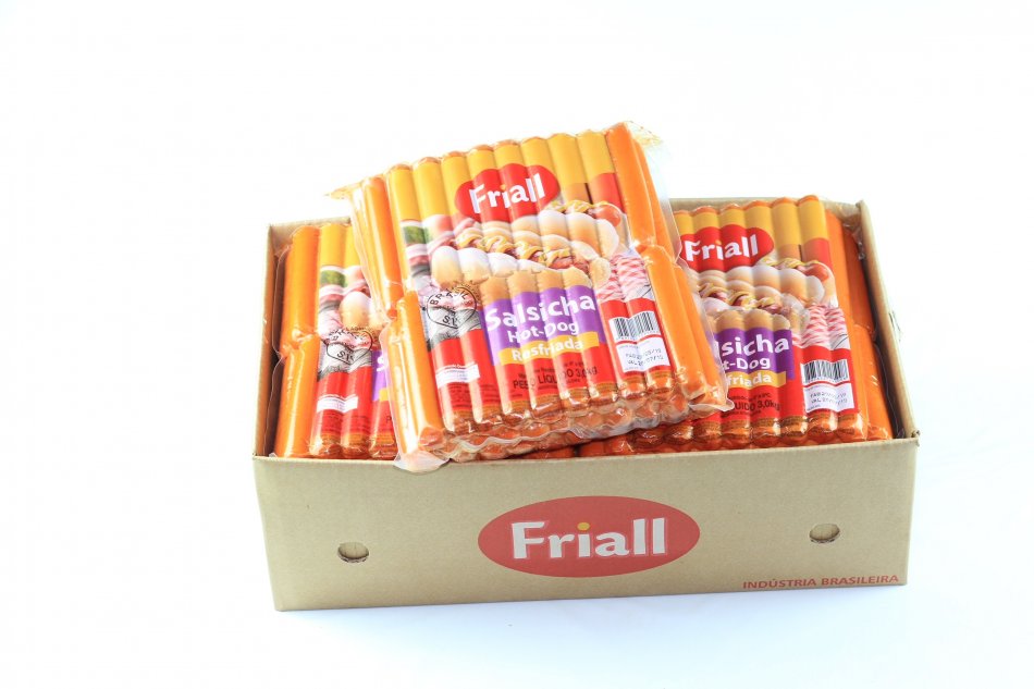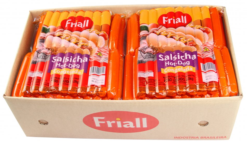 CARNE MECANICAMENTE SEPARADA DE AVES, CARNE SÚINA, ÁGUA, PROTEÍNA DE SOJA (3,9%), SAL, AMIDO (1,9%), AÇÚCAR, ESPECIARIAS NATURAIS: (PÁPRICA PICANTE, CEBOLA E PIMENTA PRETA), REGULADOR DE ACÍDEZ LACTATO DE SÓDIO (INS 325), ESTABILIZANTE: TRIPOLIFOSFATO DE SÓDIO (INS 451I), ANTIOXIDANTE: ERITORBATO DE SÓDIO (INS 316), CONSERVADOR: NITRITO DE SÓDIO (INS 250), REALÇADOR DE SABOR: GLUTAMATO MONOSSÓDICO (INS 621), CORANTE NATURAL DE URUCUM (INS 160b). AROMATIZANTES NATURAIS (ALHO, COENTRO, PIMENTA MALAGUETA, FUMAÇA, PÁPRICA E ALECRIM). ACIDULANTES ÁCIDO FOSFÓRICO (INS 338) E ÀCIDO CÍTRICO (INS 330).